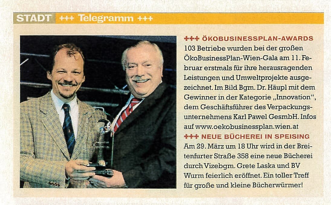 02/2010 ÖkoBusinessNews: Umweltpreis der Stadt Wien 2010