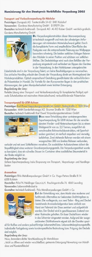 2005 Kompack: Nominierung für den Staatspreis Vorbildliche Verpackung
