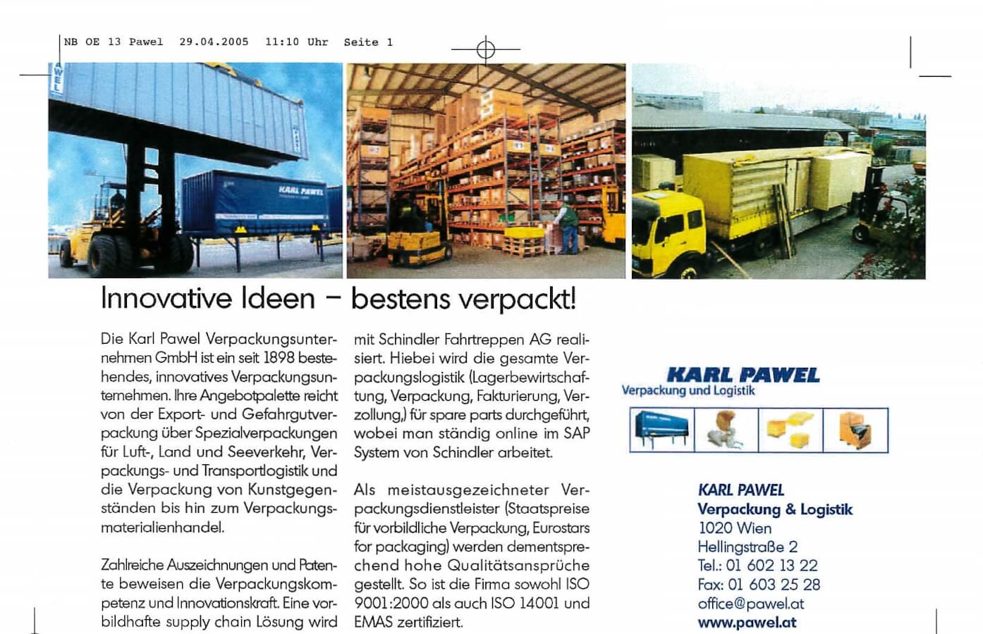 04/2005: Öst. Verkehrszeitung: Spare parts just in time mit Verpackungslogistikfirma Karl Pawel