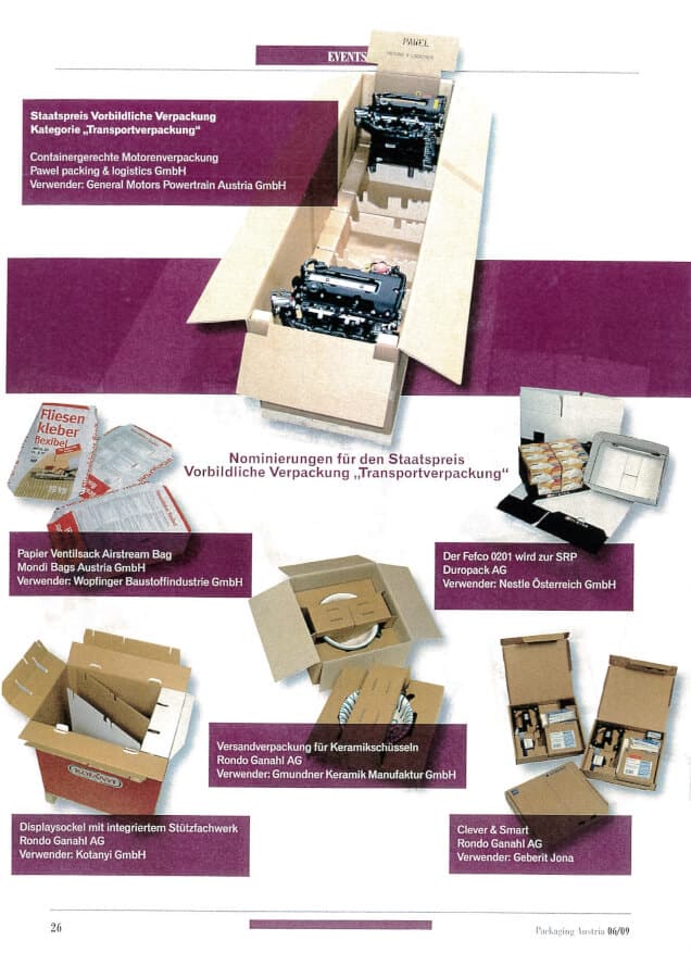 06/2009: Packaging Austria: Nominierungen für den Staatspreis Vorbildliche Verpackung „Transportverpackung“