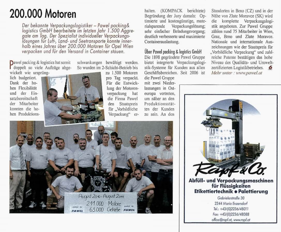 Der bekannte Verpackungslogistiker – Pawel packing & logistics GmbH bearbeitete im letzten Jahr 1.500 Aggregate am Tag.